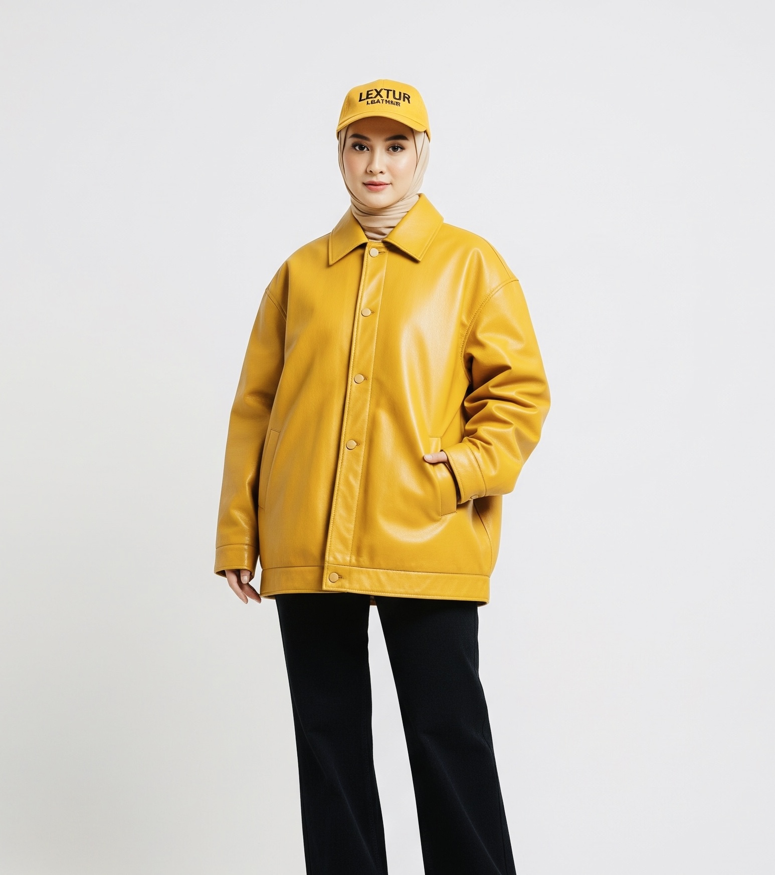 Jaket Kulit Wanita Model Oversize Warna Kuning – Jaket Kulit Kode JKT005