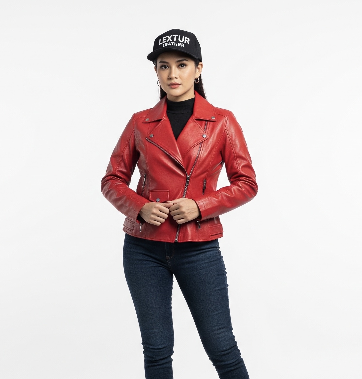 Jaket Kulit Wanita Model Ramonese Warna Merah – Jaket Kulit Kode JKT004