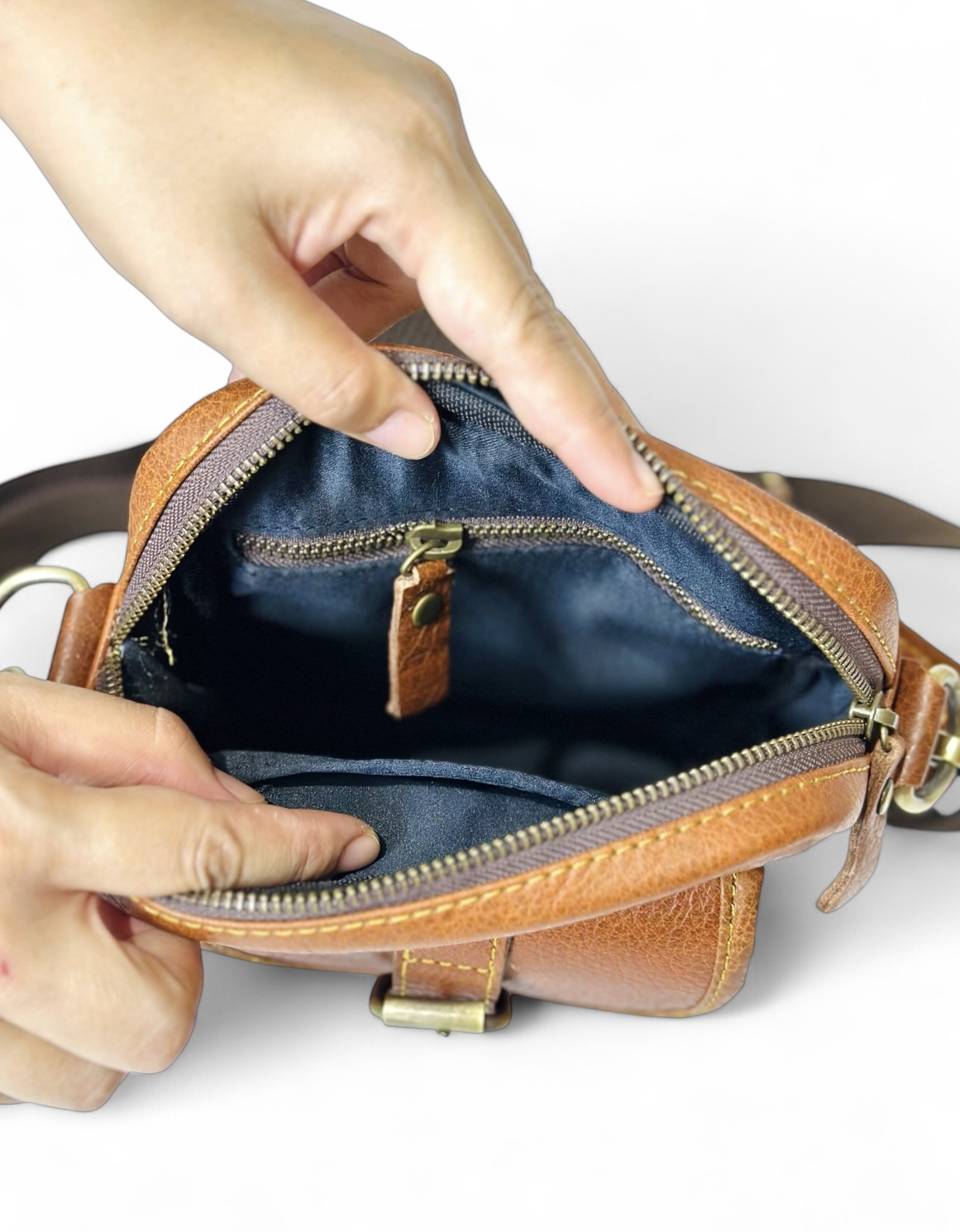 Tas Kulit Pria Model Slempang Warna Coklat Vintage – Tas Kulit Pria Kode TASP010